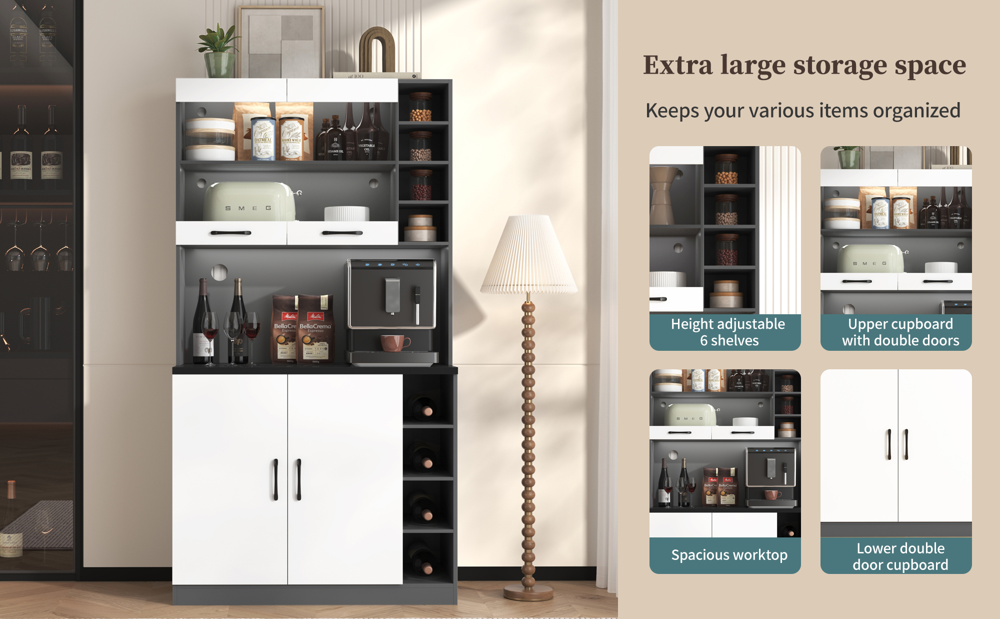 - Large storage space: The lower double-door cabinet offers generous storage (with fixed shelves) for pots, dishes, or larger kitchen appliances—keeping your space tidy and organized.