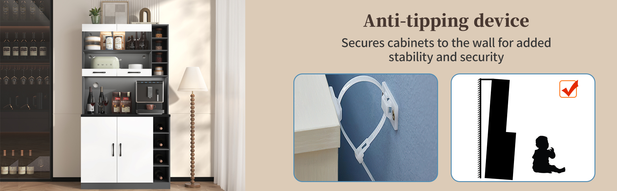 - Excellent stability and durability: The freestanding cabinet is made of selected engineered wood and MDF with a water-resistant coating for long-lasting use. Two anti-tip devices add extra safety.